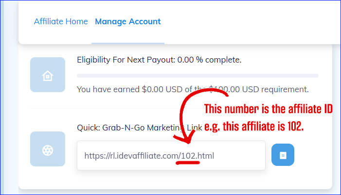 shows where you can find your Affiliate ID - either in your welcome email, or in the affiliate dashboard.